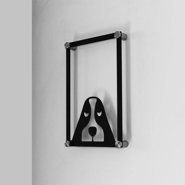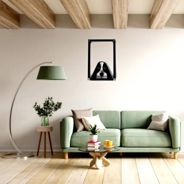 طراحی داخلی دکوراسیون منزل تنها محدود به طراحی دیوار ها با رنگ هایی خاص نیست، اضافه کردن عناصر تزیینی زیبا به دیوار ها همچون تابلو های مدرن می تواند زیبایی فوق العاده ای به فضای شما بدهند. عموما تابلو ها یکی از کانون های توجه در هر خانه ای بشمار می روند ، تمامی کسانی که برای اولین بار قدم به منزل ، اتاق یا دفتر کار شما می گذارند ، قبل از کف و سقف ابتدا دیوار های منزل یا اتاق کار شما به چشم آنها خواهد آمد؛ پس چه چیز بهتر از آنکه در ترکیب دکوراسیون داخلی خود تابلویی زیبا انتخاب کنید. تابلو های دکوراتیو یکی از بهترین و مقرون به صرفه ترین کالاهایی است که می توان به سادگی تحولی چشمگیر در منزل یا محل کار ایجاد کرد ، به همین جهت شما میتوانید با در نظر گرفتن فضای مناسب در سایز دلخواه این تابلو را سفارش دهید. تابلو دکوراتیو مدل سگ با طراحی خاص و مدرنی که دارد به محیط خانه و اتاق کودک شما زیبایی خاصی می بخشد.این تابلو از جنس فلز مقاوم بوده و دارای رنگ الکترو استاتیک ضد زنگ می باشد. به همراه این تابلو زیبا 4 عدد اسپیسر آلومینیومی در بسته بندی قرار دارد که باعث ایجاد سایه ای از تابلو بر روی دیوار در هنگام نصب می گردد و حالت سه بعدی جذابی به تابلو می بخشد.